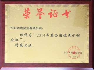 2014年度全國(guó)優(yōu)秀企業(yè)證書(shū)
