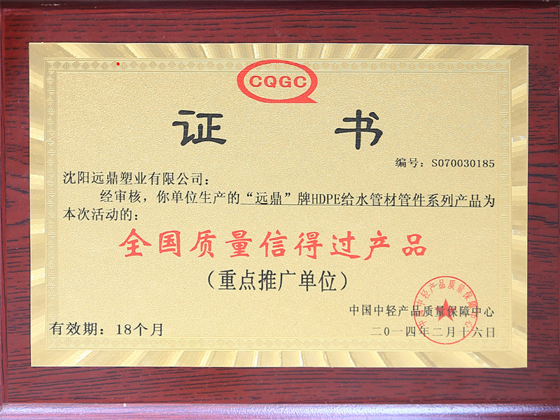全國(guó)質(zhì)量信得過(guò)產(chǎn)品證書(shū)
