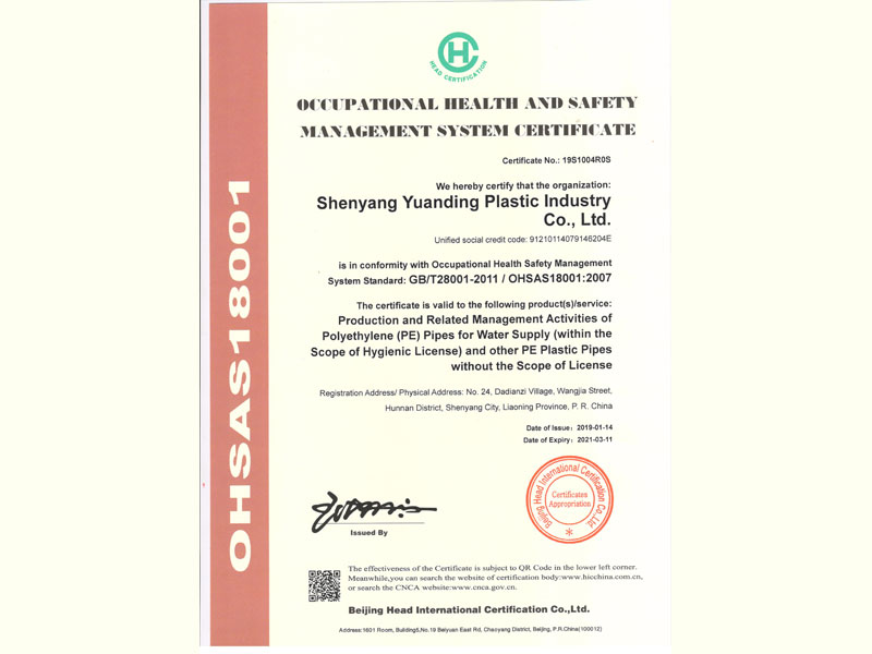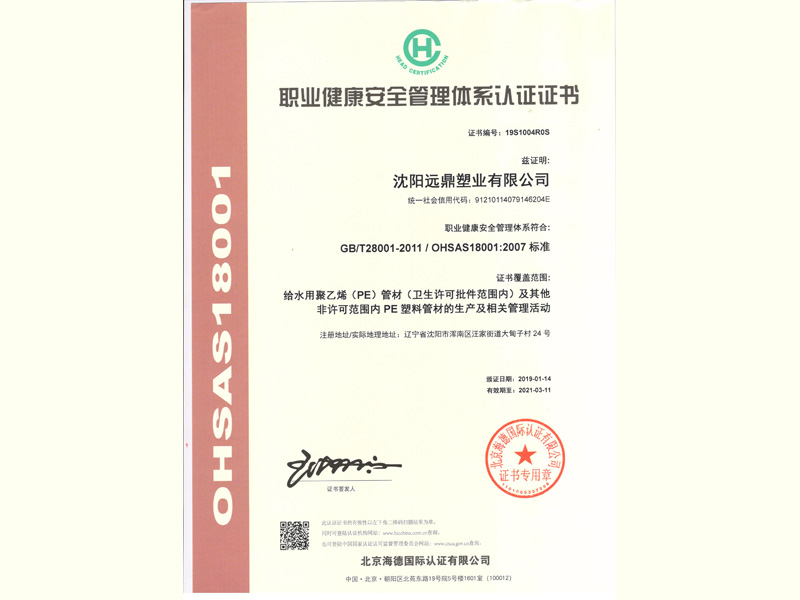 職業(yè)健康安全管理體系認(rèn)證證書(shū)
