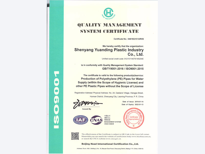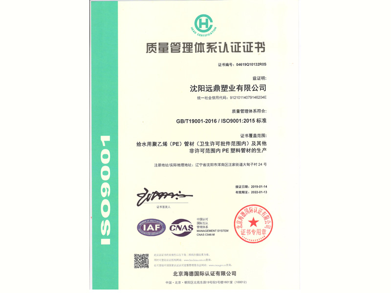 質(zhì)量管理體系認(rèn)證證書(shū)